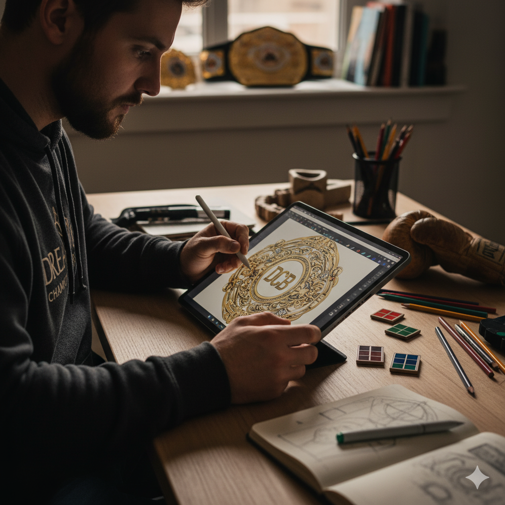 The Content: Every legendary belt begins with an idea. You provide us with your initial concept, which can be anything from a rough sketch to a detailed design brief, or simply a description of your event, logo, and desired look. We discuss the key features: size, shape, number of plates, color scheme, and material preferences. This is where we define the dream.