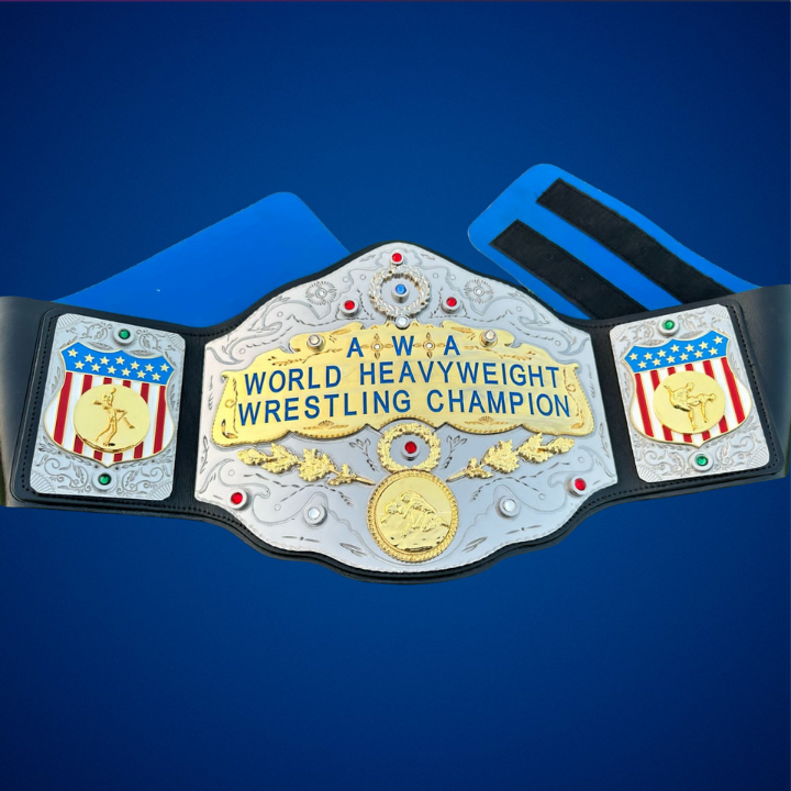 Step into wrestling history with this AWA World Heavyweight Championship Belt, a faithful replica of the iconic “Inmate Style” title once worn by legends of the American Wrestling Association. With its vintage flair and patriotic design, this belt captures the bold spirit of classic professional wrestling.