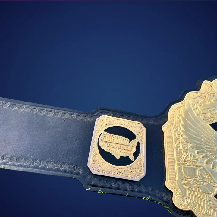 The Custom American Heavyweight Championship Title Belt blends heritage and modern detail — 4mm zinc alloy, 24K gold plating, and USA-themed design, fully customizable for champions and collectors.