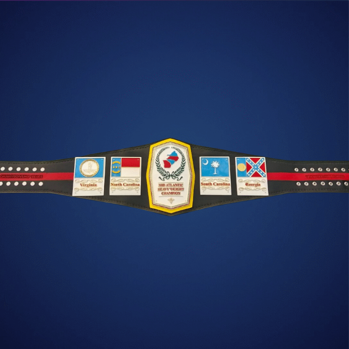 Center reads: “Mid Atlantic Heavyweight Champion” in red, framed with gold border