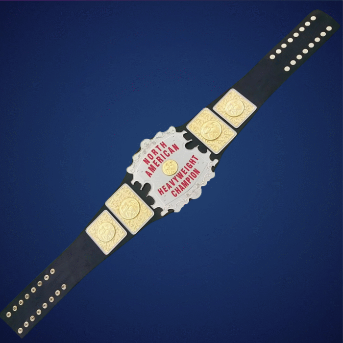 Command the spotlight with this custom-designed North American Heavyweight Champion belt — a timeless symbol of wrestling supremacy and rugged heritage. Whether you’re a promoter, collector, or champion, this belt is built to showcase dominance and tradition in equal measure.