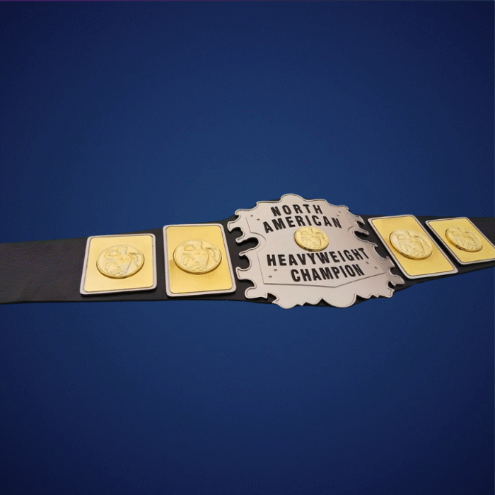 This classic 5-plate North American title belt is a timeless tribute to wrestling’s regional glory — reimagined for today’s champions and collectors.