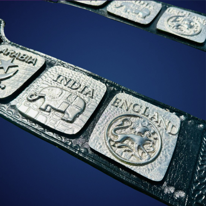 • Includes engraved country emblems — USA, Italy, Canada, Arabia, India, and England — representing international wrestling excellence.