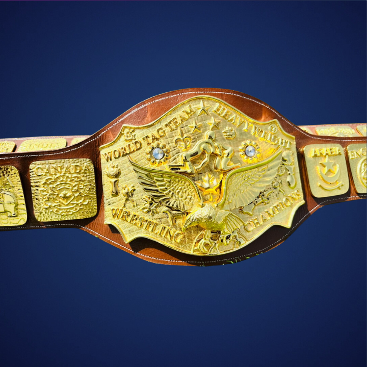 Celebrate the legacy of tag team wrestling with this iconic World Tag Team Heavyweight Championship Title Belt (Gold Edition) — a tribute to the golden era of professional wrestling. Featuring a 3D golden eagle centerpiece, this belt symbolizes global strength, unity, and victory in true championship fashion.