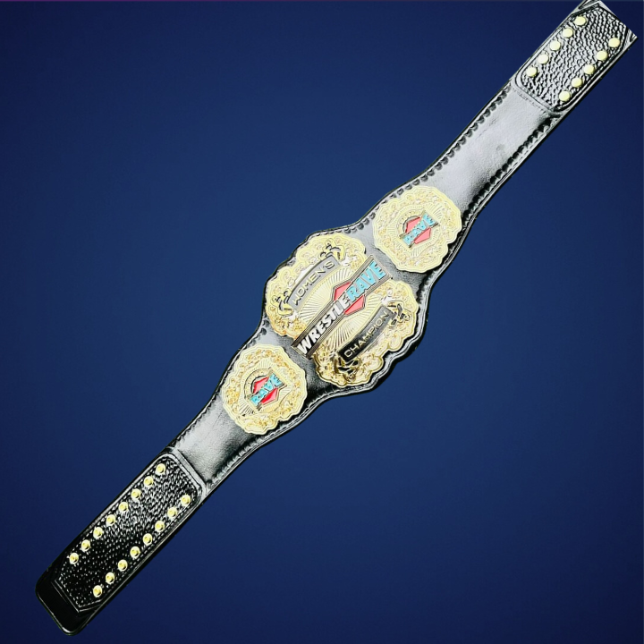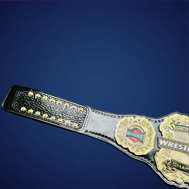 ✅ Signature WRESTLE RAVE Logo Centerpiece — Boldly engraved in gold with a commanding presence.
